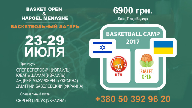 ОО "Basket open" и Баскетбольный клуб "Hapoel" Menashe приглашают юношей 2002-2004 года, принять участие в Международном Баскетбольном Лагере "Basket Open" 23-29 июля 2017 (заезд в лагерь 23 июля в 13.00/выезд из лагеря 29 июля в 12.00).